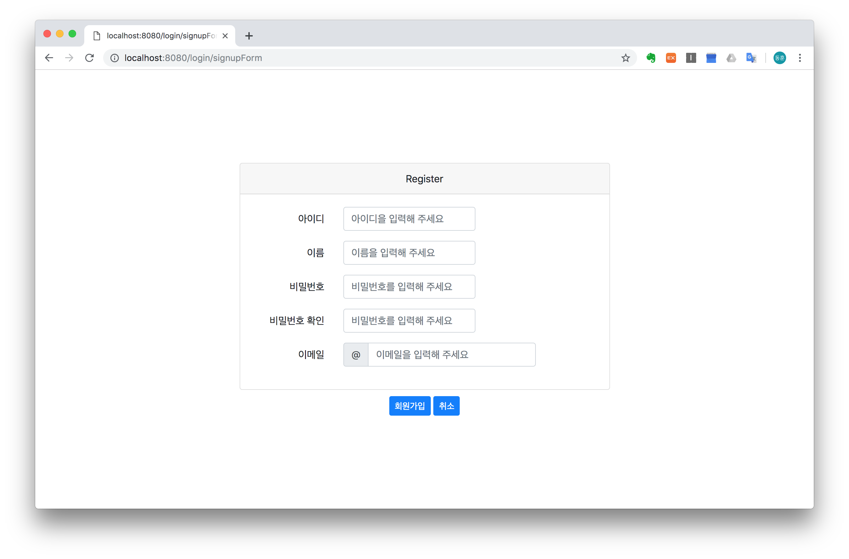 로그인 폼을 만들었지만, 아직 회원 정보가 아무것도 없어서 로그인을 할 수 없습니다.