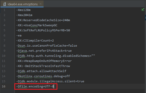 그리고 열린 내용의 가장 아랫줄에 -Dfile.encoding=UTF-8 를 입력해 주자.