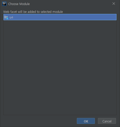 모듈 선택 팝업에서 반드시 해당 프로젝트를 선택해 주어야 합니다.