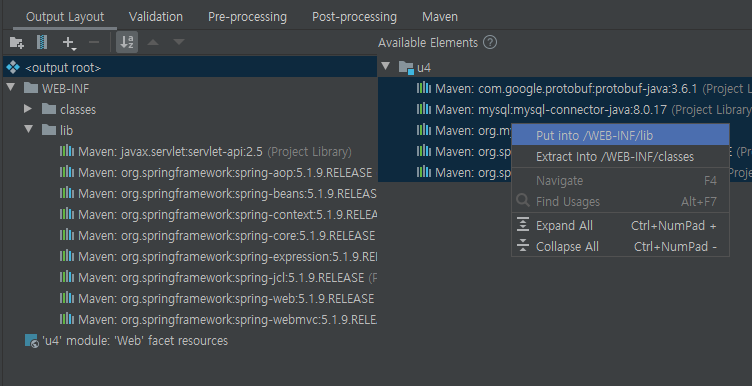 라이브러리가 추가 되었으므로 프로젝트에서 사용 할 수 있도록 'Project Structure'의 'Artifacts' 에서 추가해 주어야 합니다.