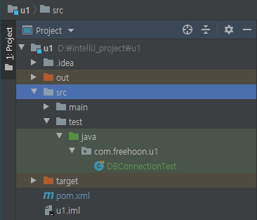 이 예제에서는 이 디렉토리에 com.freehoon.u1 이라는 패키지를 만들어 테스트 코드를 추가 하였습니다.